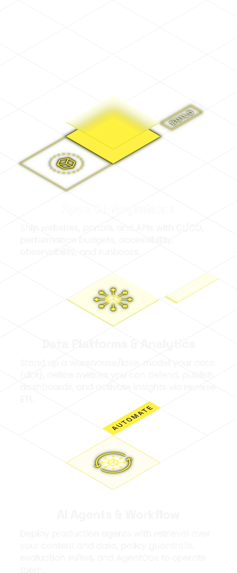 We ship production software, wire trustworthy data, and deploybrand‑safe AI agents—with KPI‑committed delivery for growth‑stage teams.